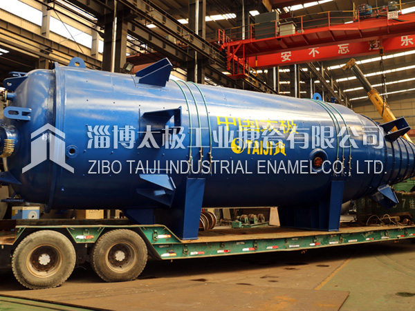 2018年10月10日,兩臺目前國內最長的搪玻璃設備搪玻璃錐形反應釜(60000L)在太極制造完畢,并順利圓滿裝車運往用戶基地。根據技術部提供的參數,該設備長度為13.8米,是目前國內最長的搪玻璃設備