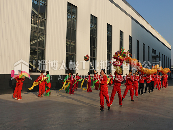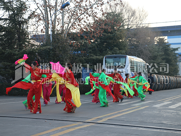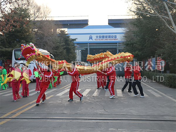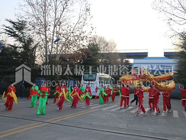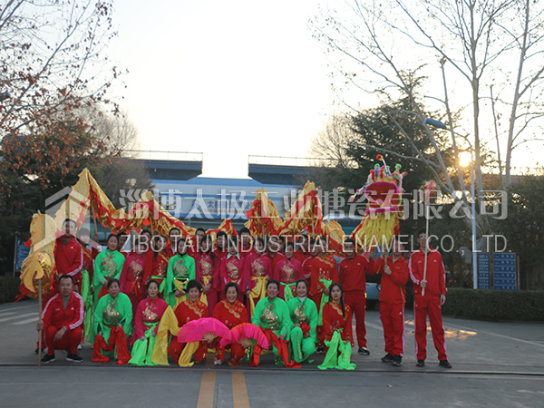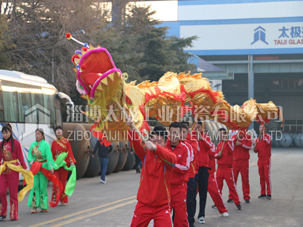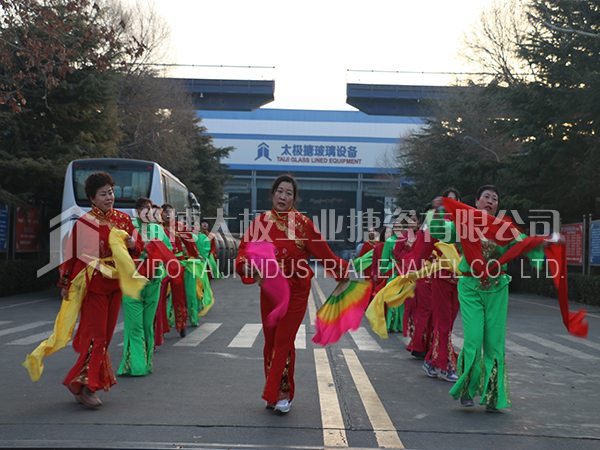 餐后職工及家屬們?cè)谏顓^(qū)廣場上打起鼓來敲起鑼,舞龍秧歌放煙花。共同祝愿太極搪玻璃設(shè)備公司的明天更加燦爛輝煌。
